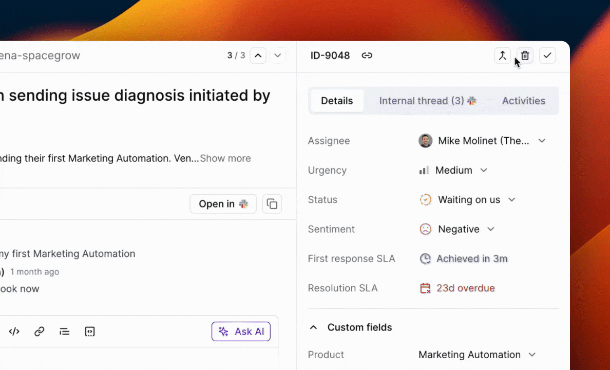 On the Thena app, open a request in the drawer and click on Merge request at the top right corner.