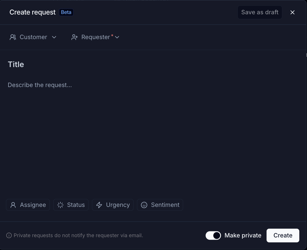 Set visibility: Use the Make private toggle to determine the request’s visibility.