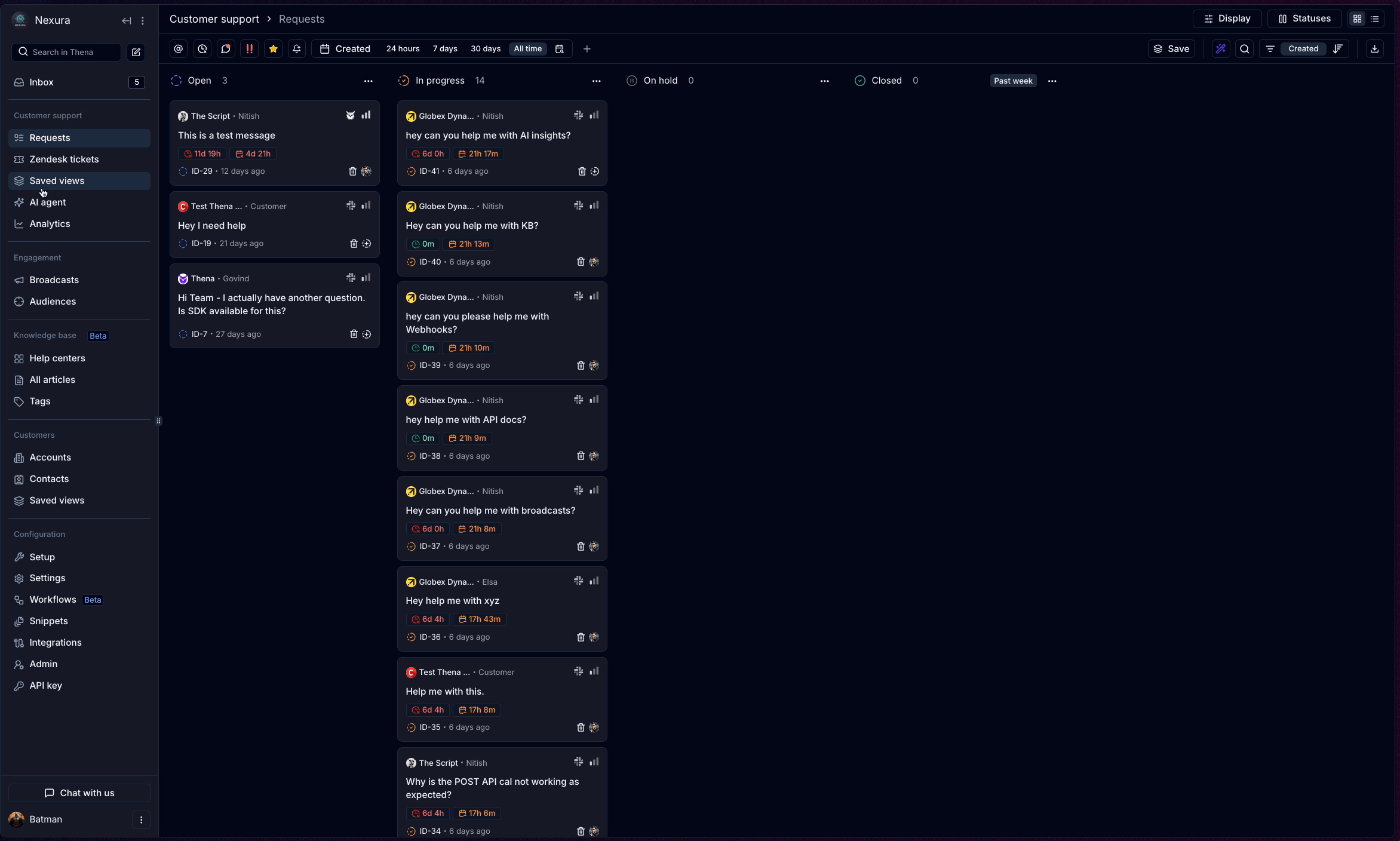 1. Launch Thena's Web UI and select Integrations from the left menu.