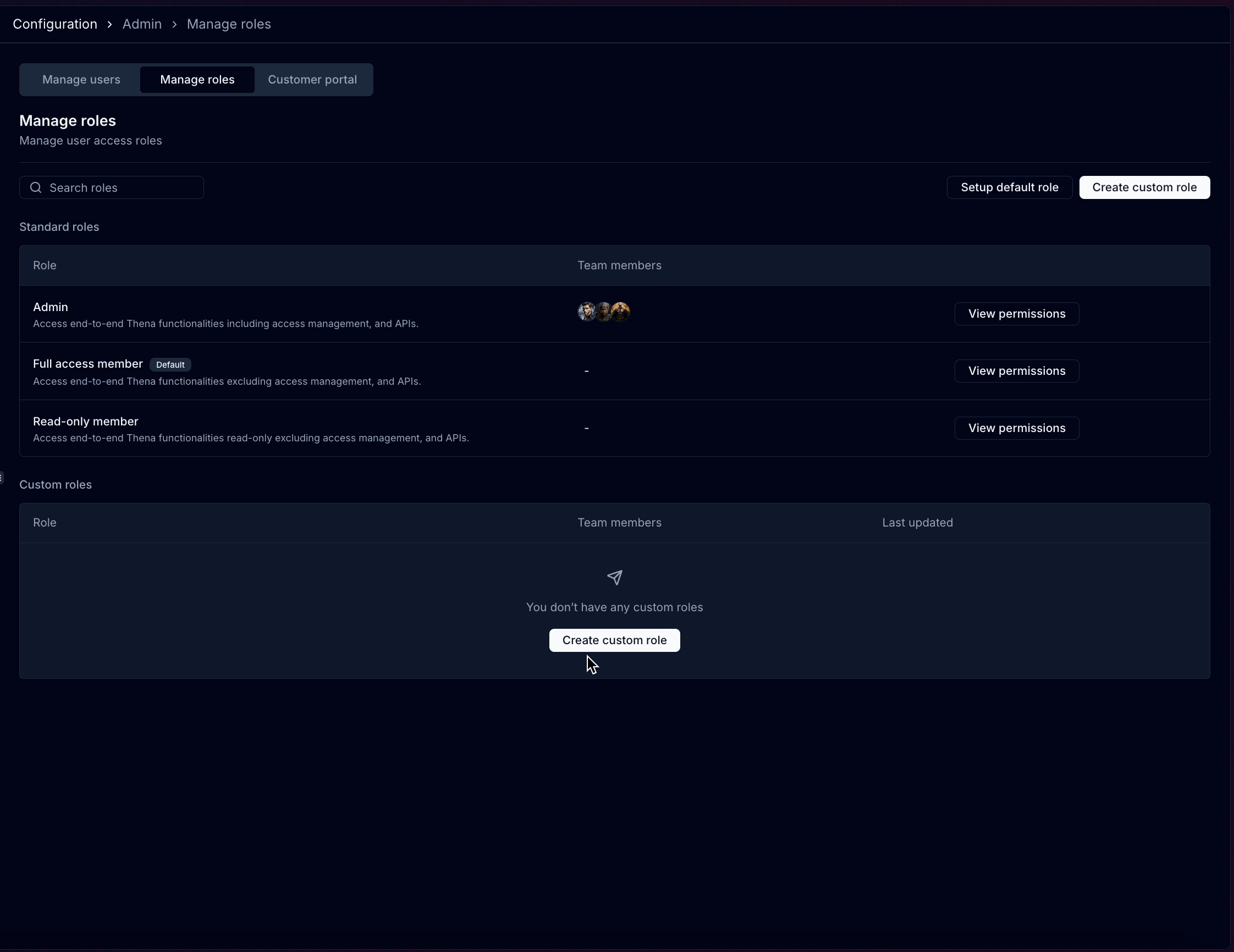 To create a custom role in Thena, follow these steps: