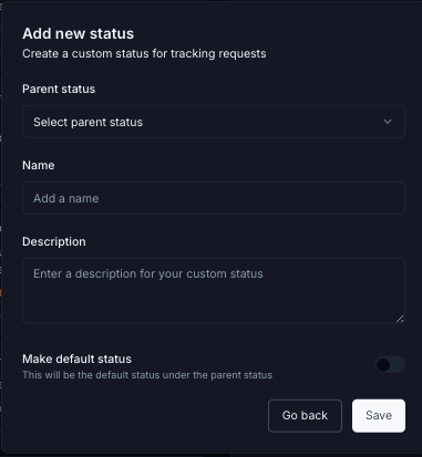 Set as Default (Optional): If you want this new status to be the default for its parent category, select the Make default status option.